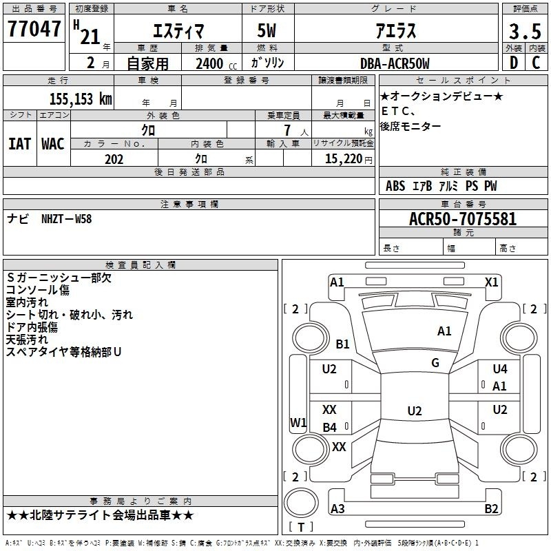 TOYOTA ESTIMA - лот 77047
