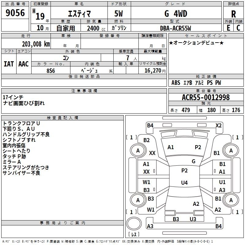 TOYOTA ESTIMA - лот 9056