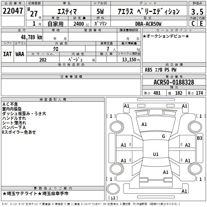TOYOTA ESTIMA - лот 22047