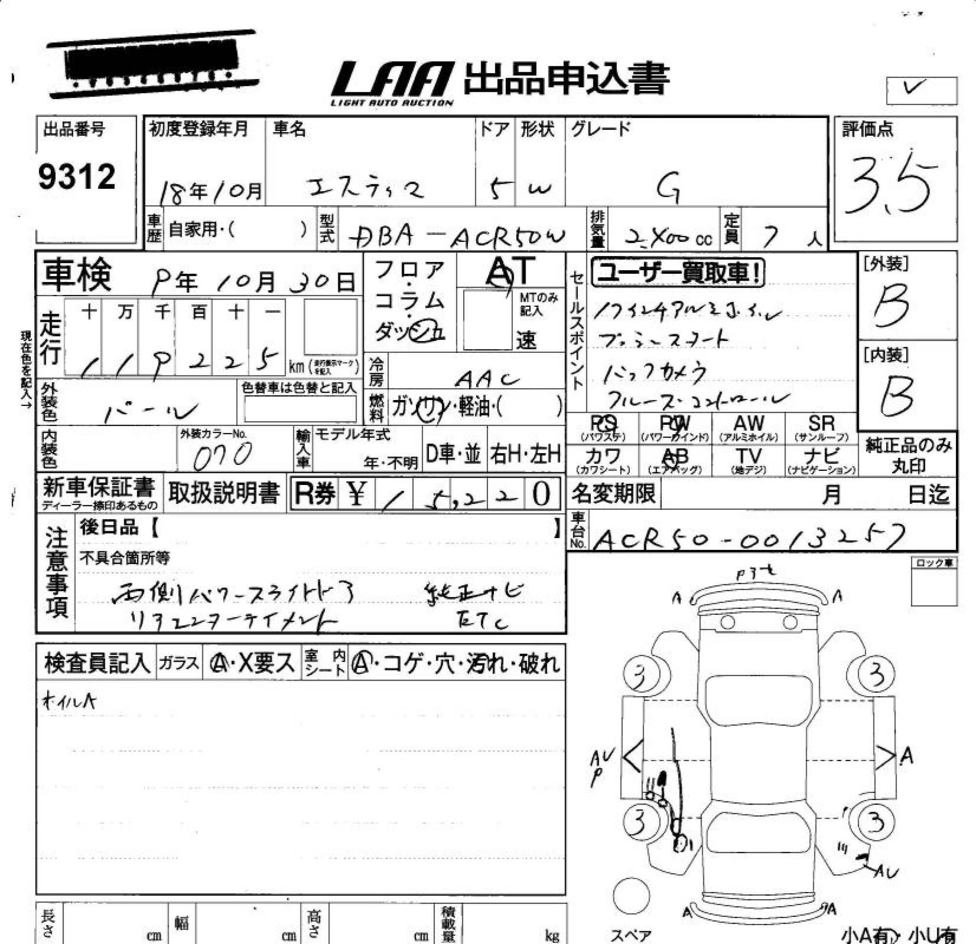 TOYOTA ESTIMA - лот 9312