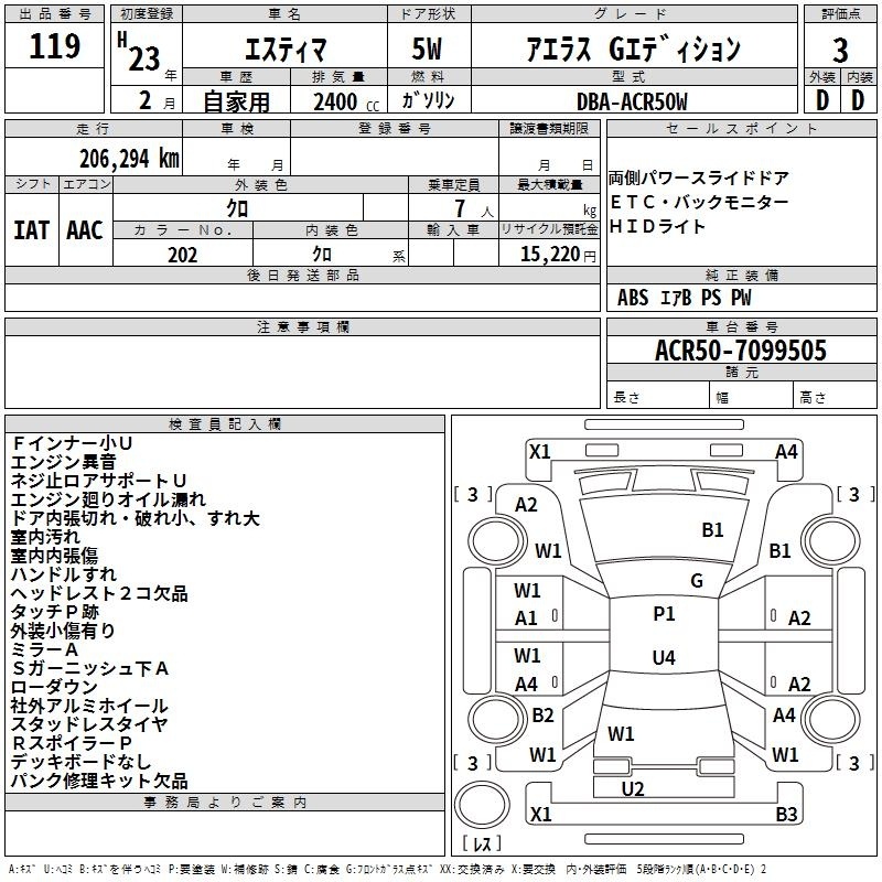 TOYOTA ESTIMA - лот 119