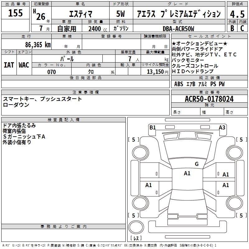 TOYOTA ESTIMA - лот 155