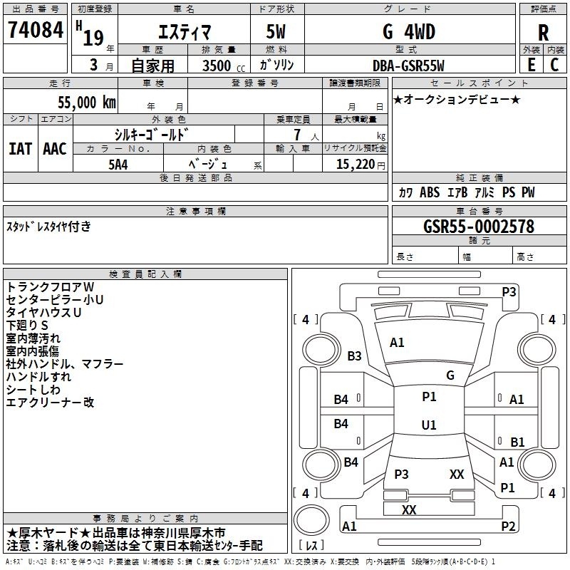 TOYOTA ESTIMA - лот 74084