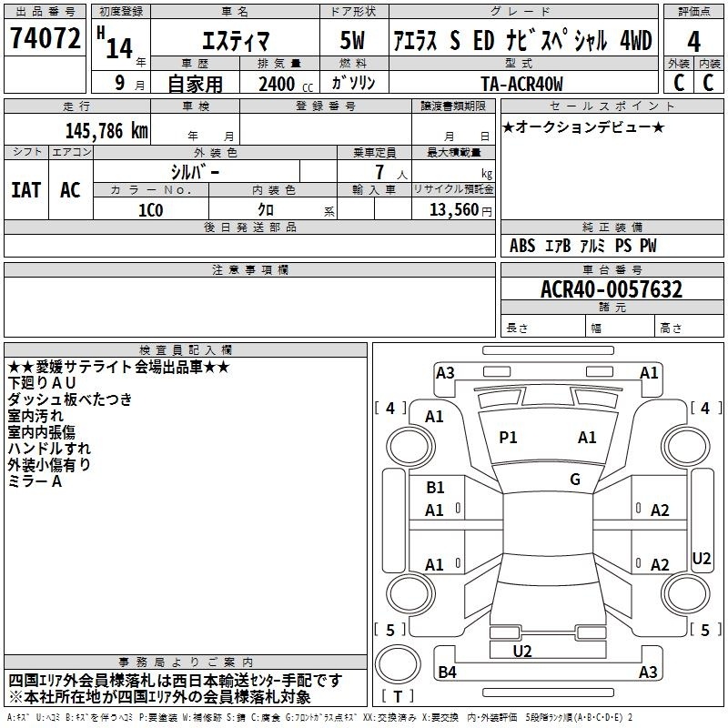 TOYOTA ESTIMA - лот 74072