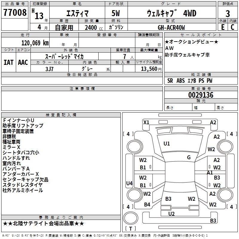 TOYOTA ESTIMA - лот 77008