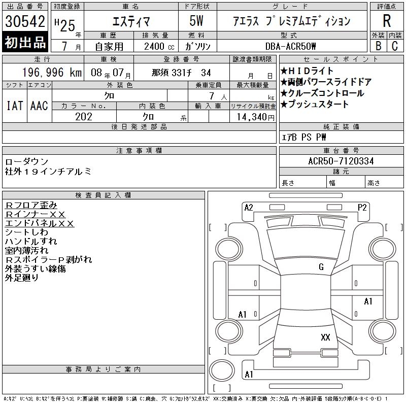 TOYOTA ESTIMA AERAS PREMIUM EDITION - лот 30542