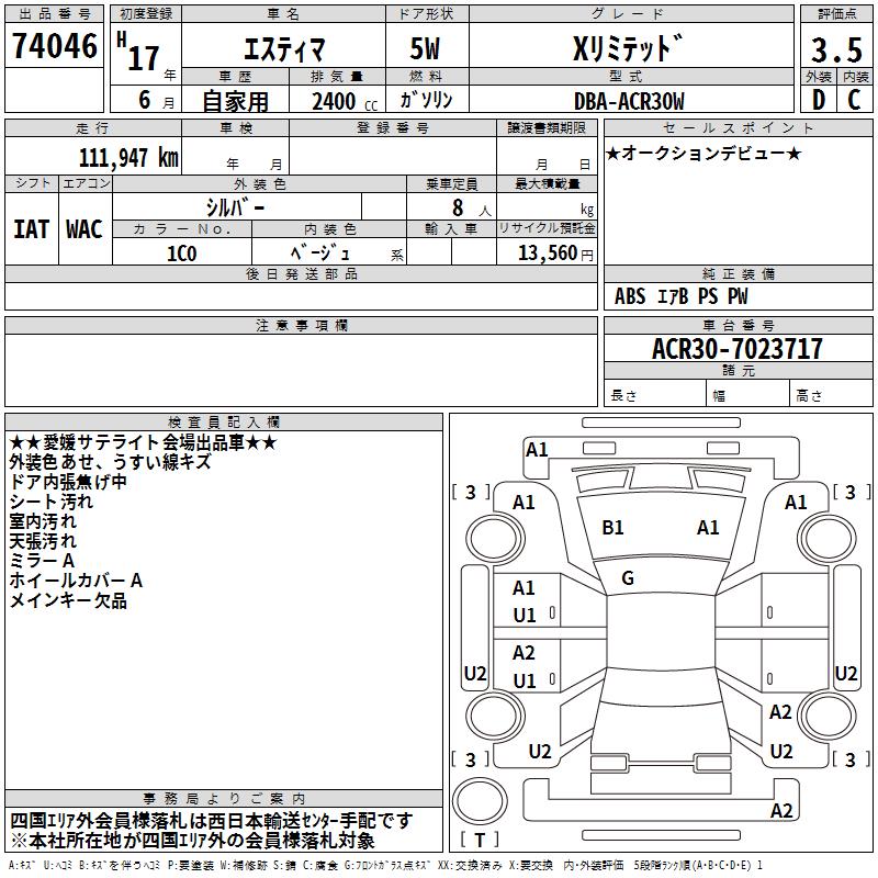 TOYOTA ESTIMA - лот 74046