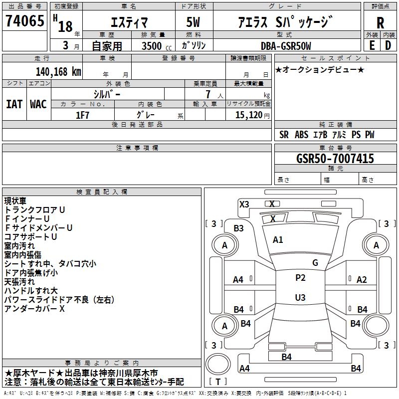 TOYOTA ESTIMA - лот 74065