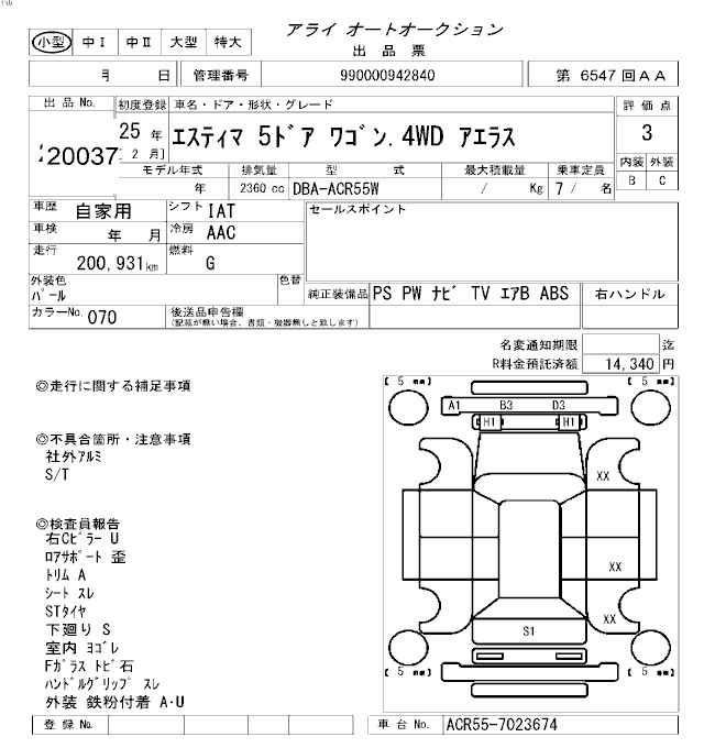 TOYOTA ESTIMA - лот 20037