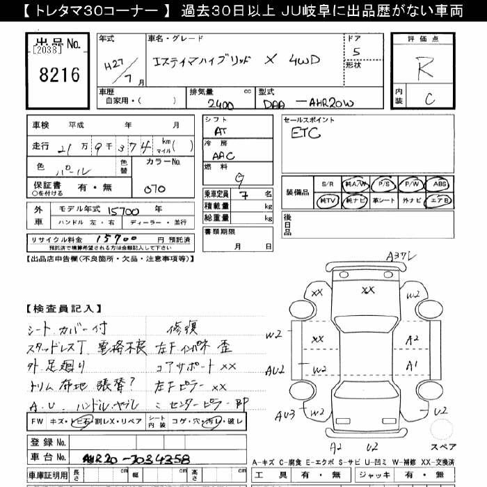 TOYOTA ESTIMA - лот 8216