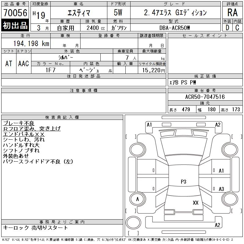 TOYOTA ESTIMA - лот 70056
