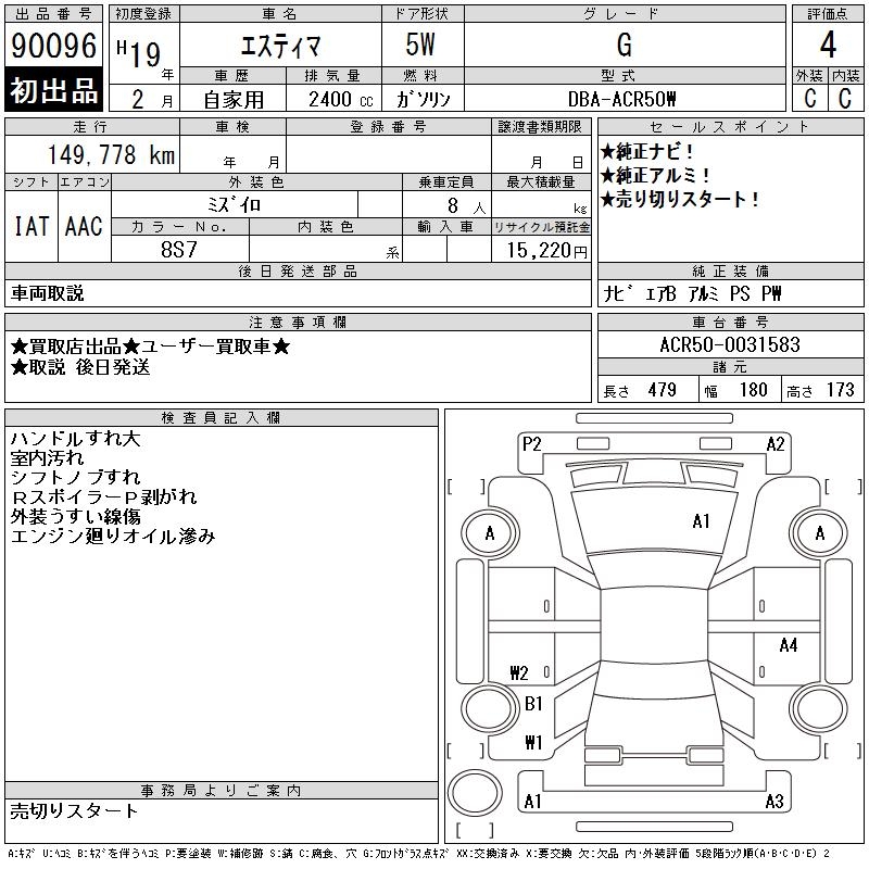 TOYOTA ESTIMA - лот 90096