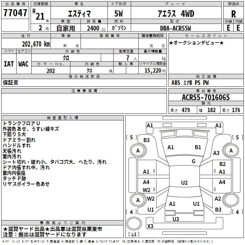 TOYOTA ESTIMA - лот 77047