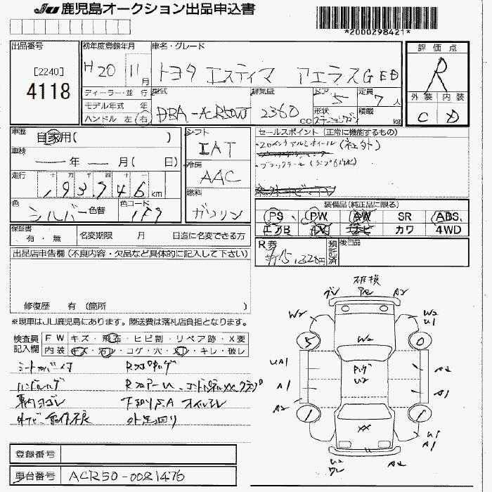 TOYOTA ESTIMA - лот 4118