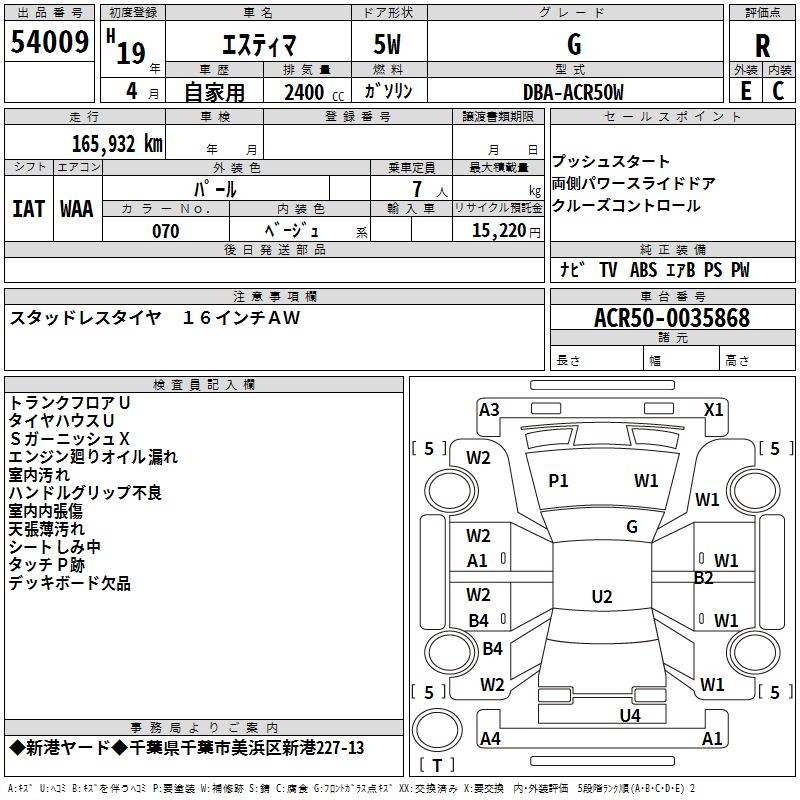TOYOTA ESTIMA - лот 54009