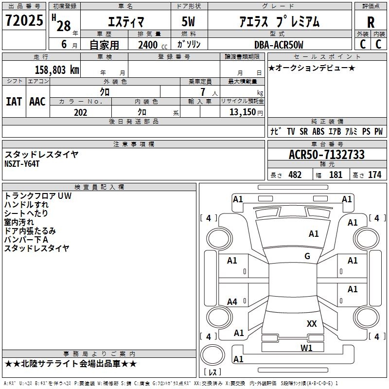 TOYOTA ESTIMA - лот 72025