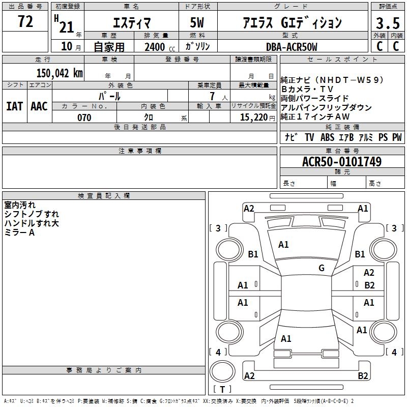TOYOTA ESTIMA - лот 72