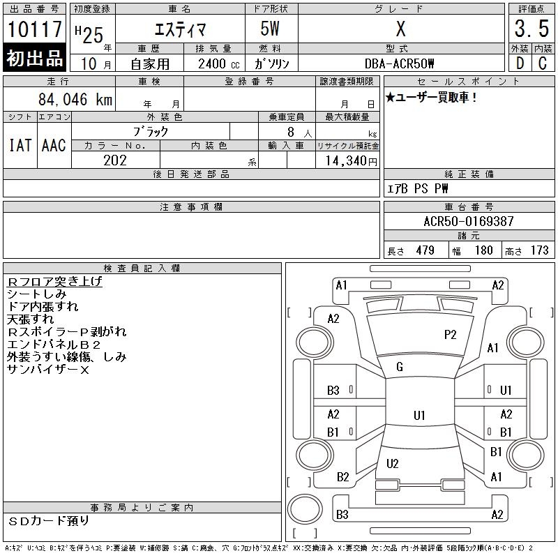 TOYOTA ESTIMA - лот 10117