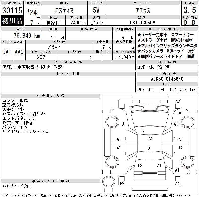 TOYOTA ESTIMA - лот 30115