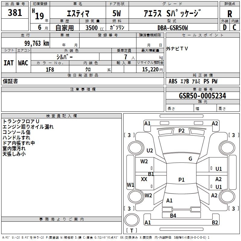 TOYOTA ESTIMA - лот 381