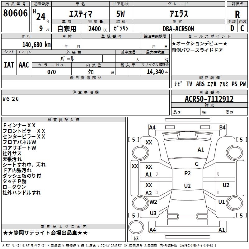 TOYOTA ESTIMA - лот 80606