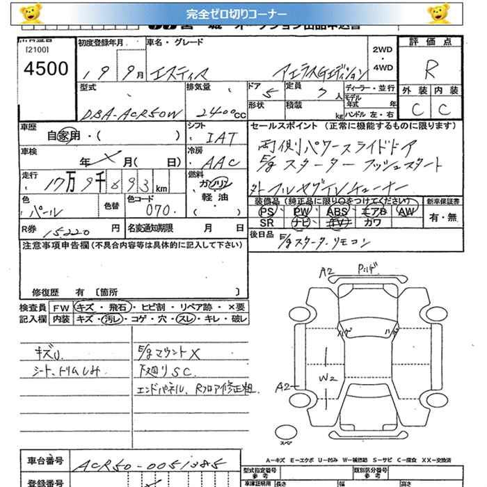 TOYOTA ESTIMA - лот 4500