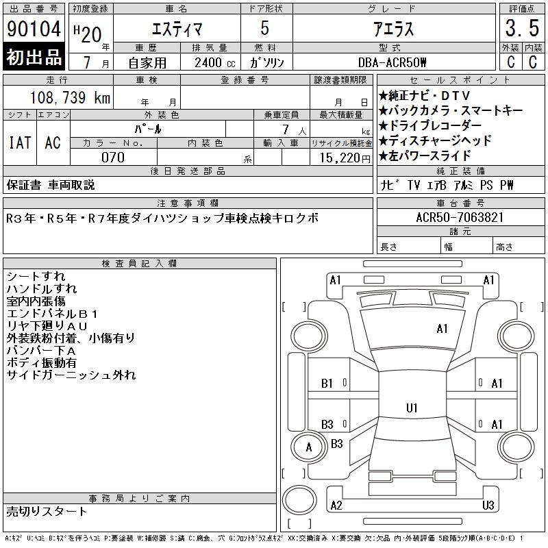 TOYOTA ESTIMA - лот 90104