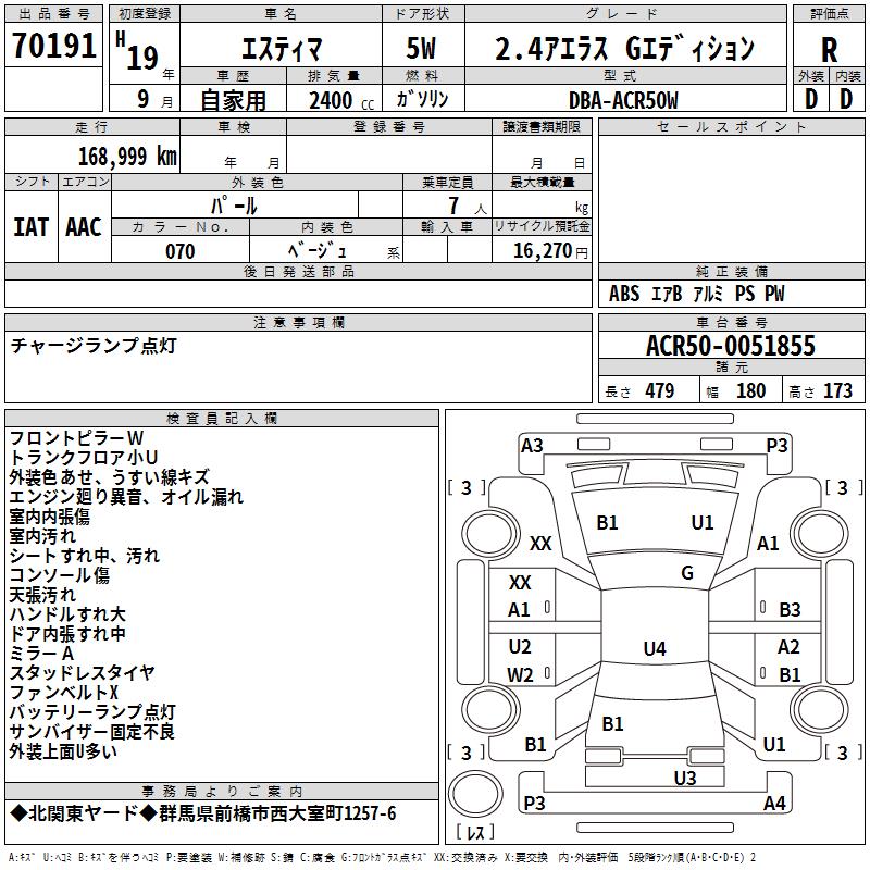 TOYOTA ESTIMA - лот 70191