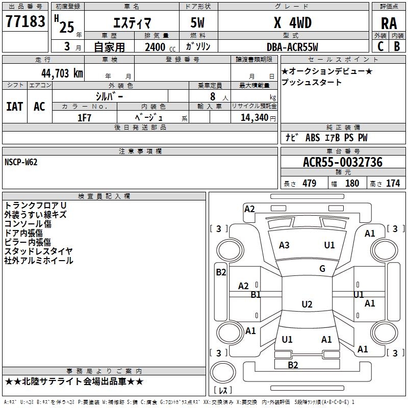 TOYOTA ESTIMA - лот 77183