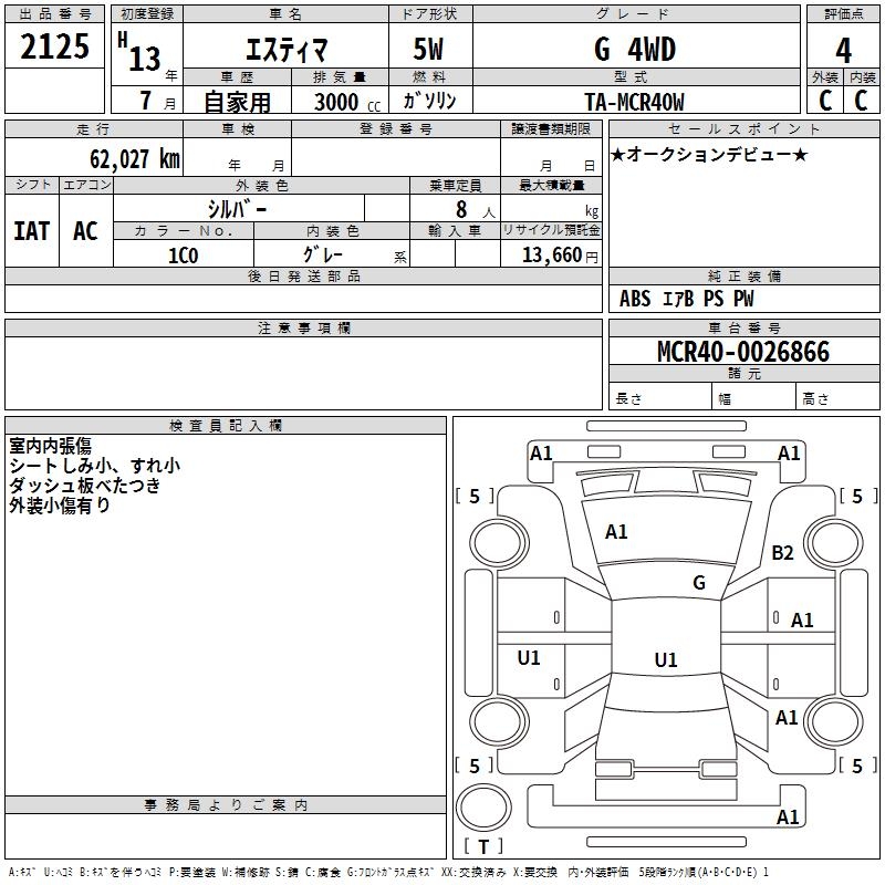 TOYOTA ESTIMA - лот 2125