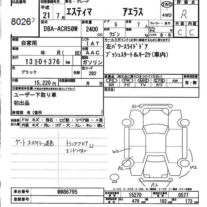 TOYOTA ESTIMA - лот 8026