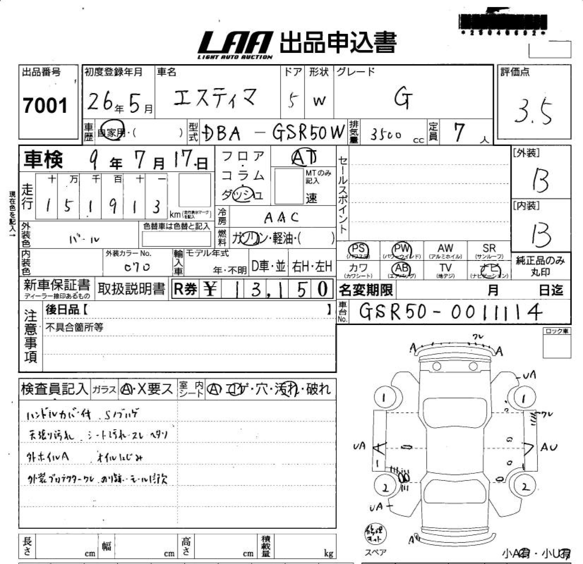 TOYOTA ESTIMA - лот 7001
