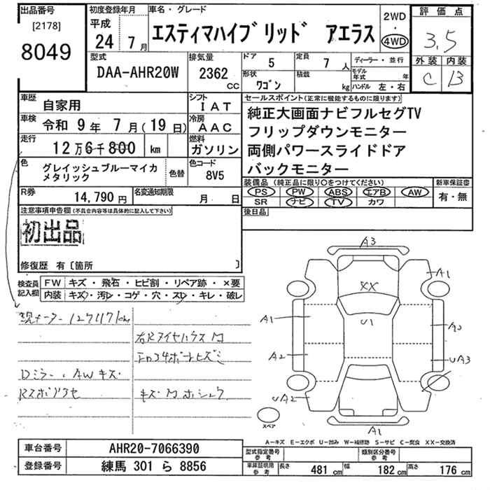 TOYOTA ESTIMA - лот 8049