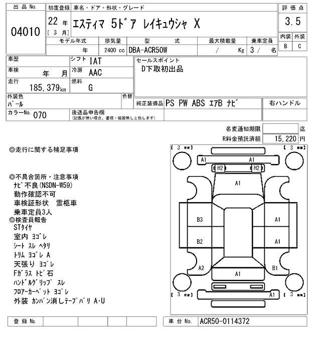 TOYOTA ESTIMA - лот 4010