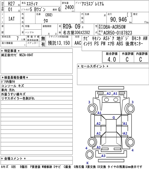 TOYOTA ESTIMA - лот 4046
