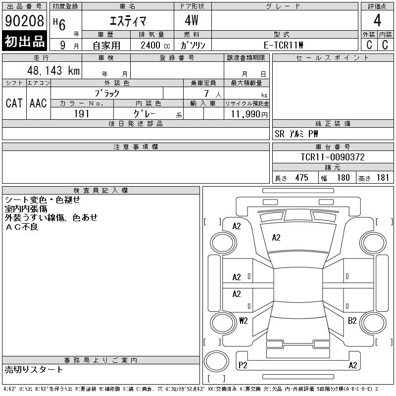 TOYOTA ESTIMA - лот 90208