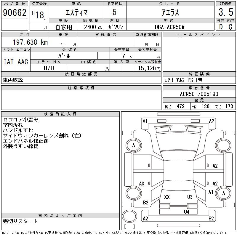 TOYOTA ESTIMA - лот 90662