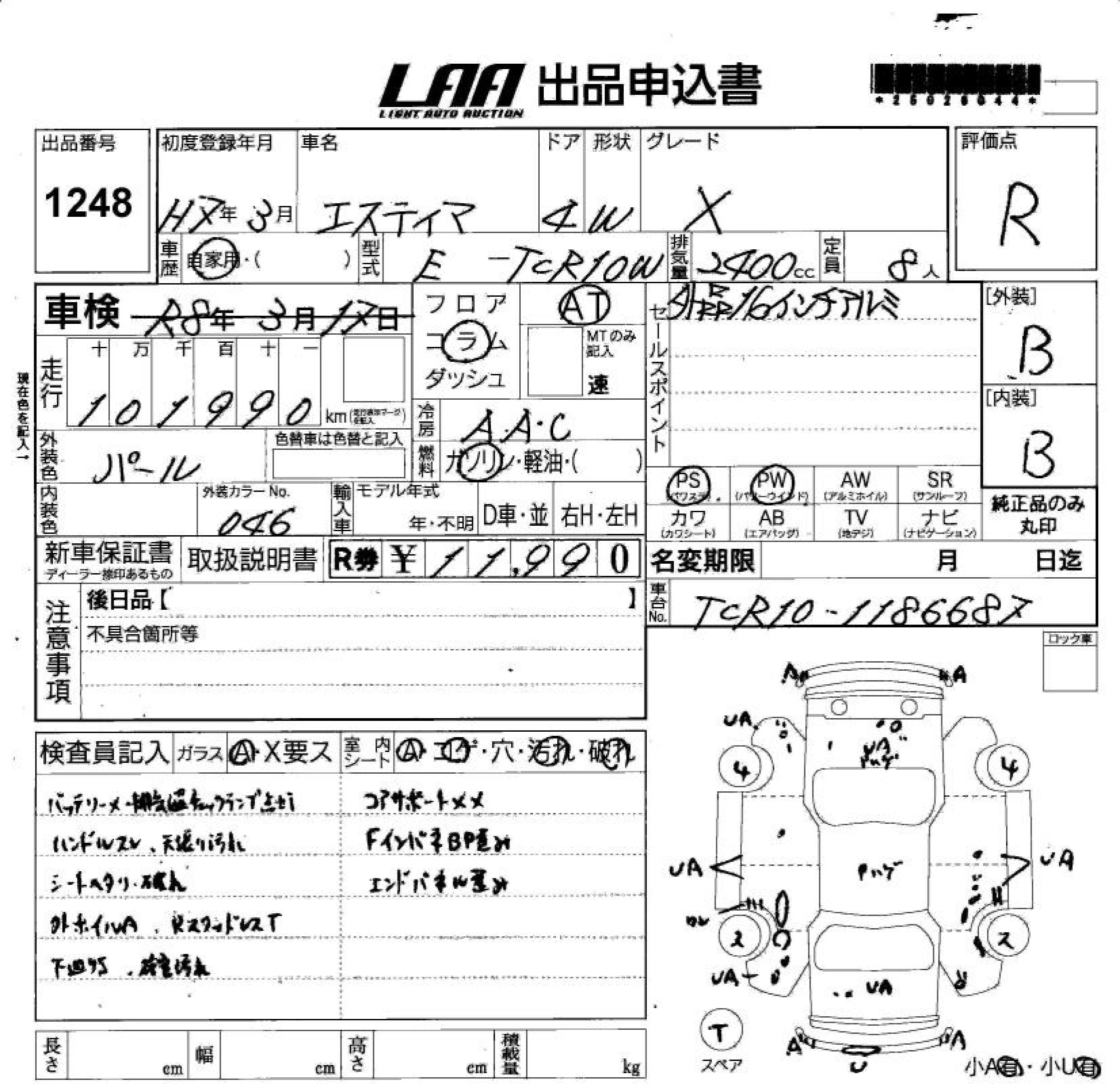 TOYOTA ESTIMA - лот 1248