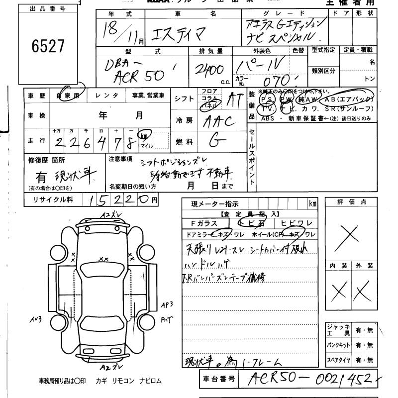 TOYOTA ESTIMA - лот 6527