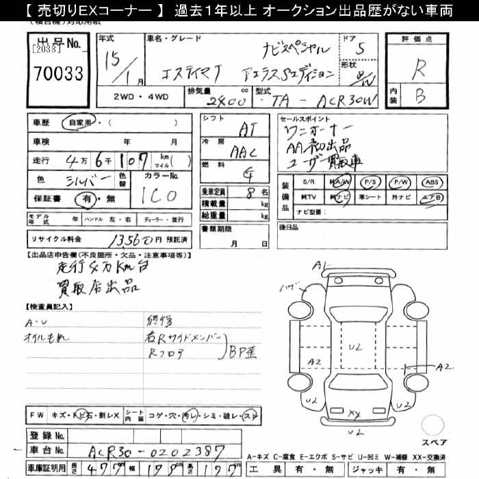 TOYOTA ESTIMA - лот 70033