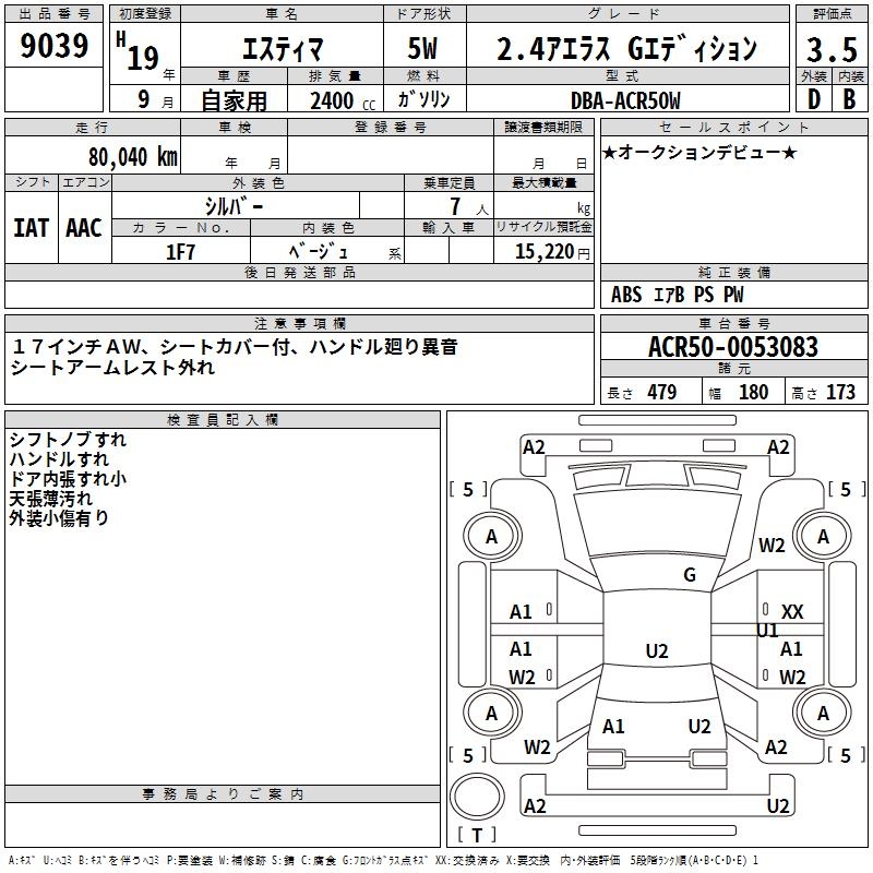 TOYOTA ESTIMA - лот 9039