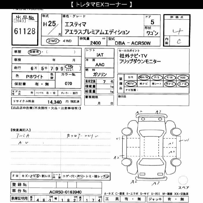 TOYOTA ESTIMA - лот 61128