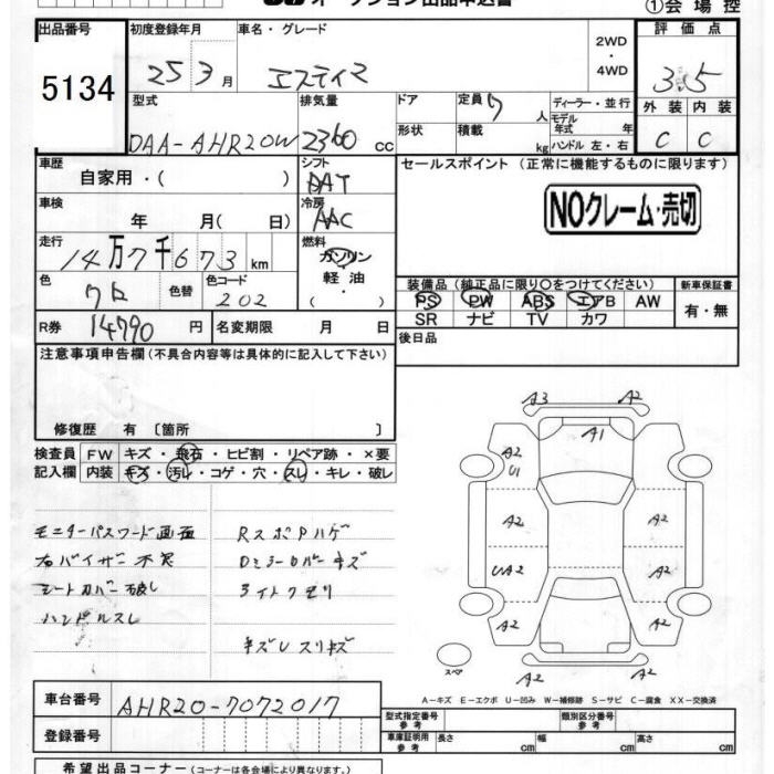 TOYOTA ESTIMA - лот 5134