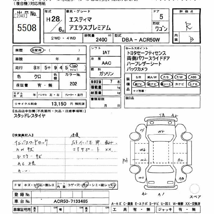 TOYOTA ESTIMA - лот 5508