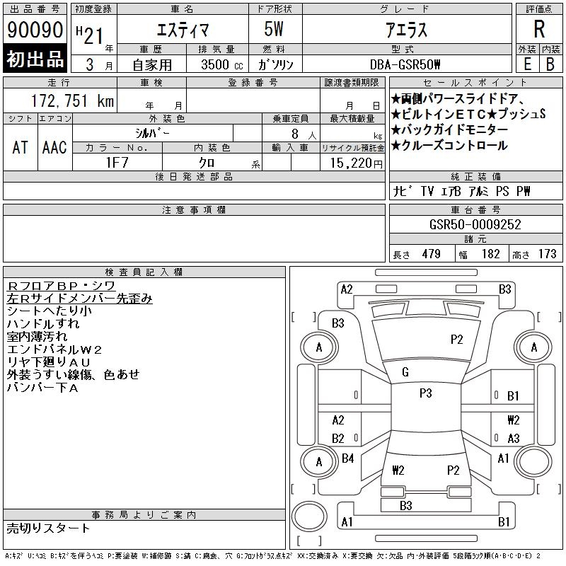 TOYOTA ESTIMA - лот 90090