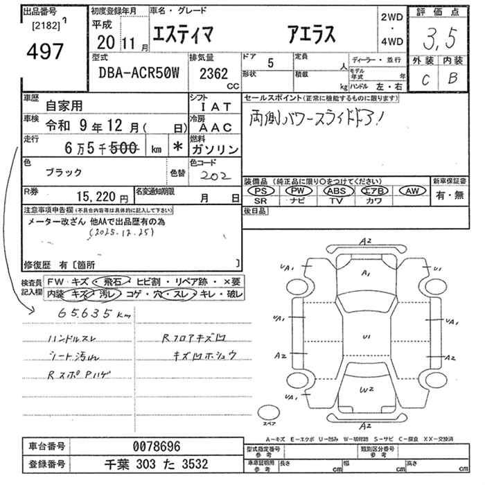 TOYOTA ESTIMA - лот 497