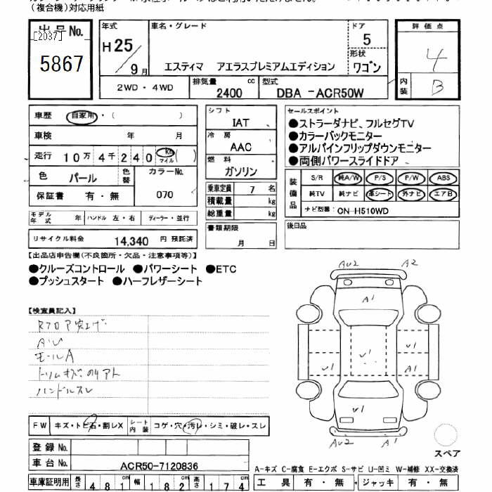 TOYOTA ESTIMA - лот 5867