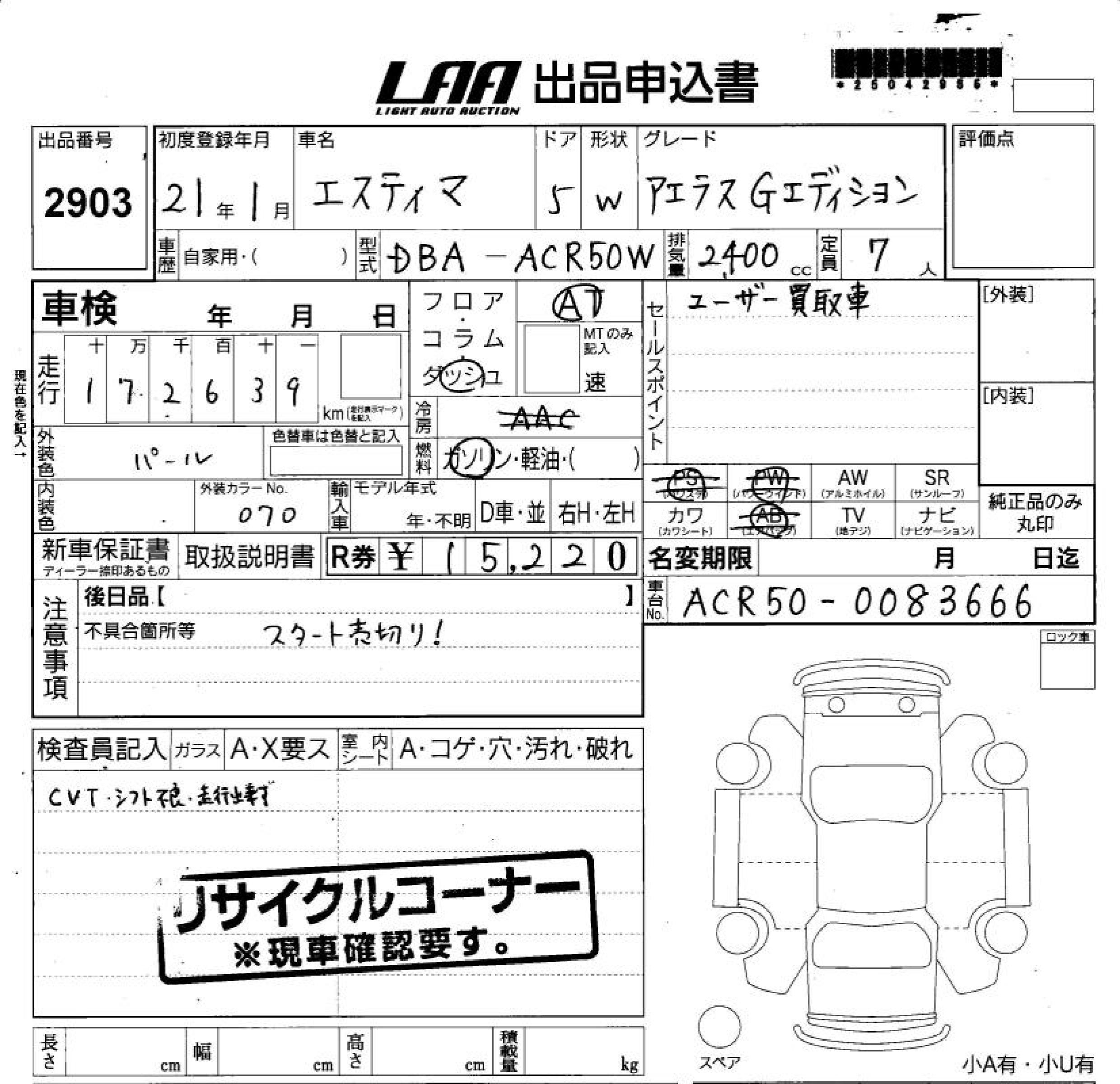 TOYOTA ESTIMA - лот 2903