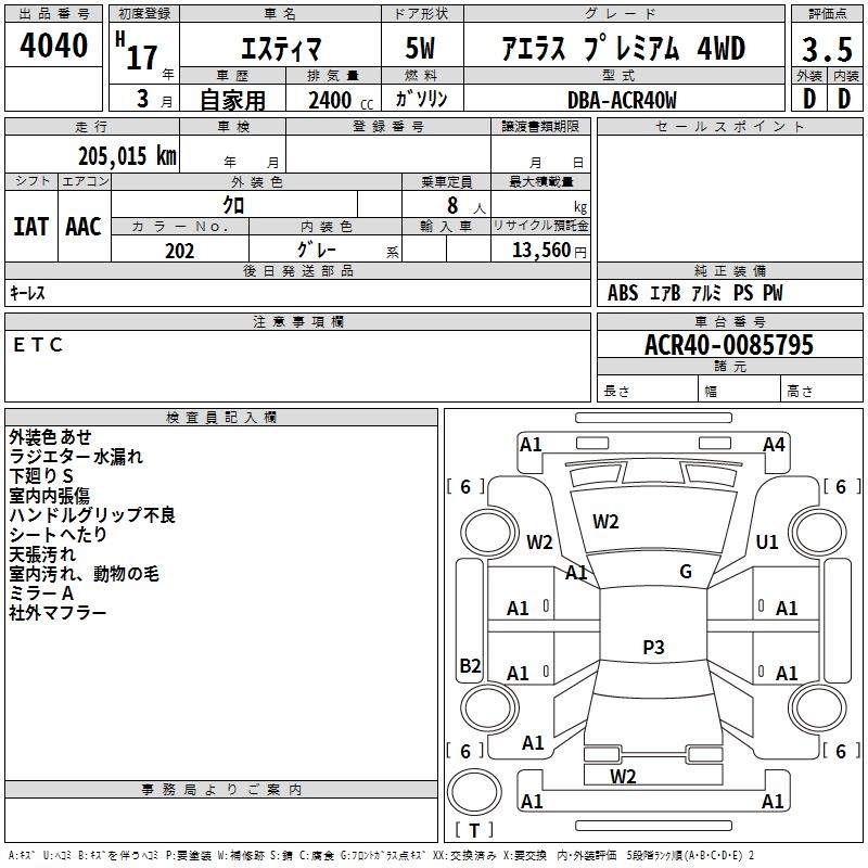 TOYOTA ESTIMA - лот 4040