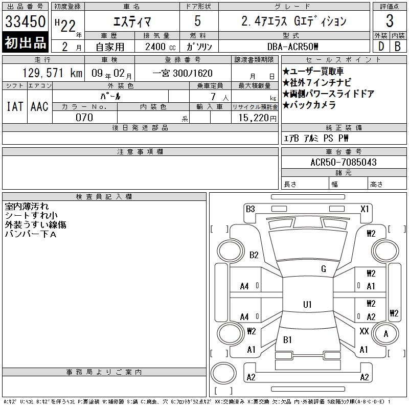 TOYOTA ESTIMA - лот 33450